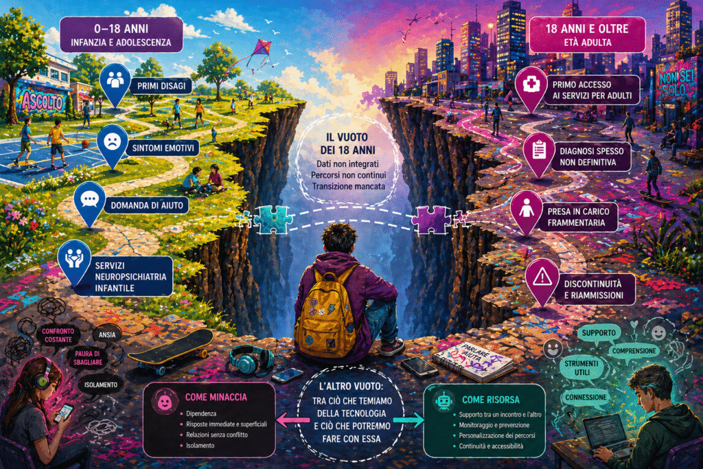 Nella salute mentale in Italia, quel punto in cui la mappa scompare è la transizione tra l’adolescenza e la maggiore età, i diciotto anni.